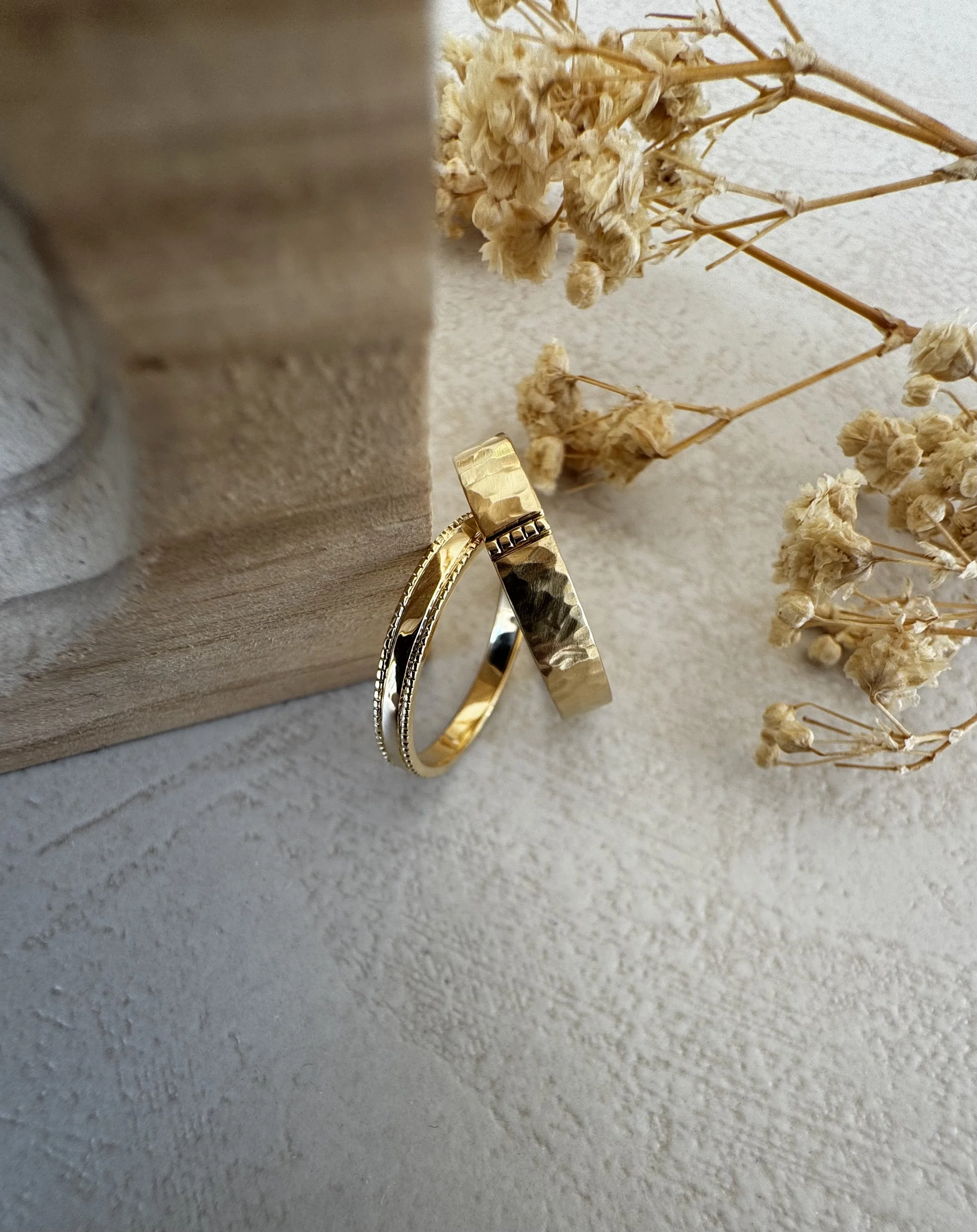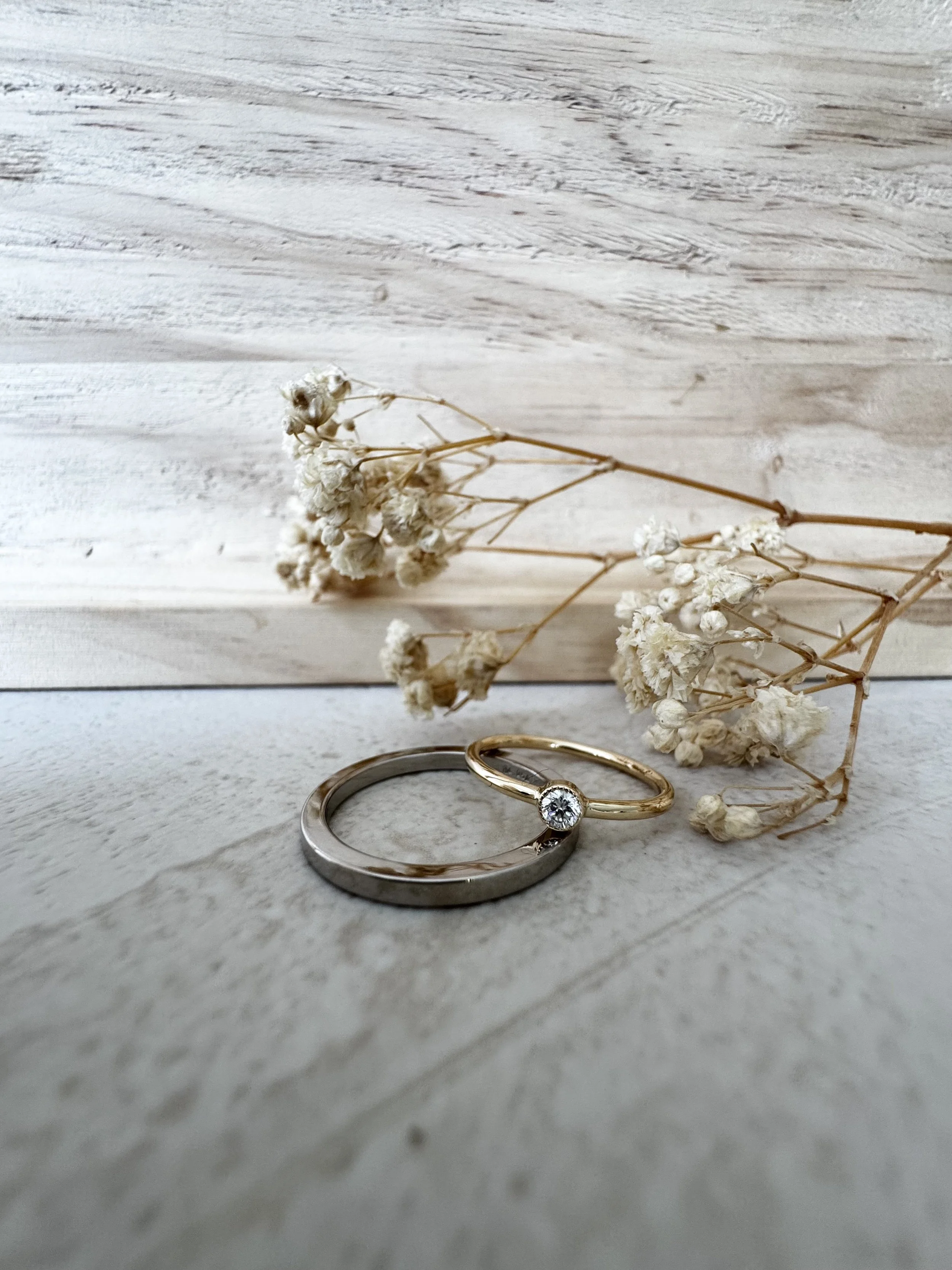 À l’écoute de vos envies, je vous accompagne pour créer des alliances uniques, que ce soit avec de l’or recyclé issu de vos anciens bijoux ou de nouvelles bagues sur-mesure.